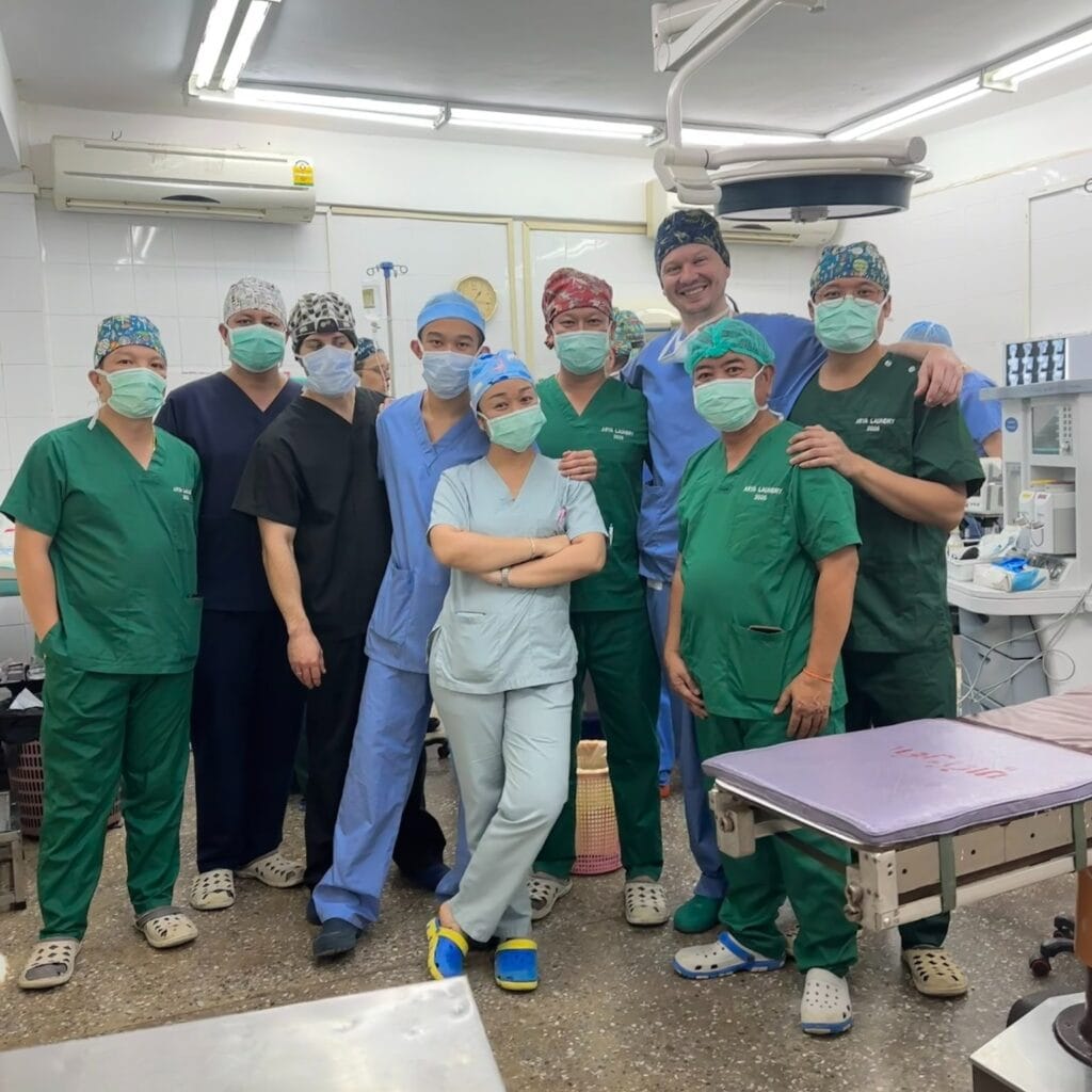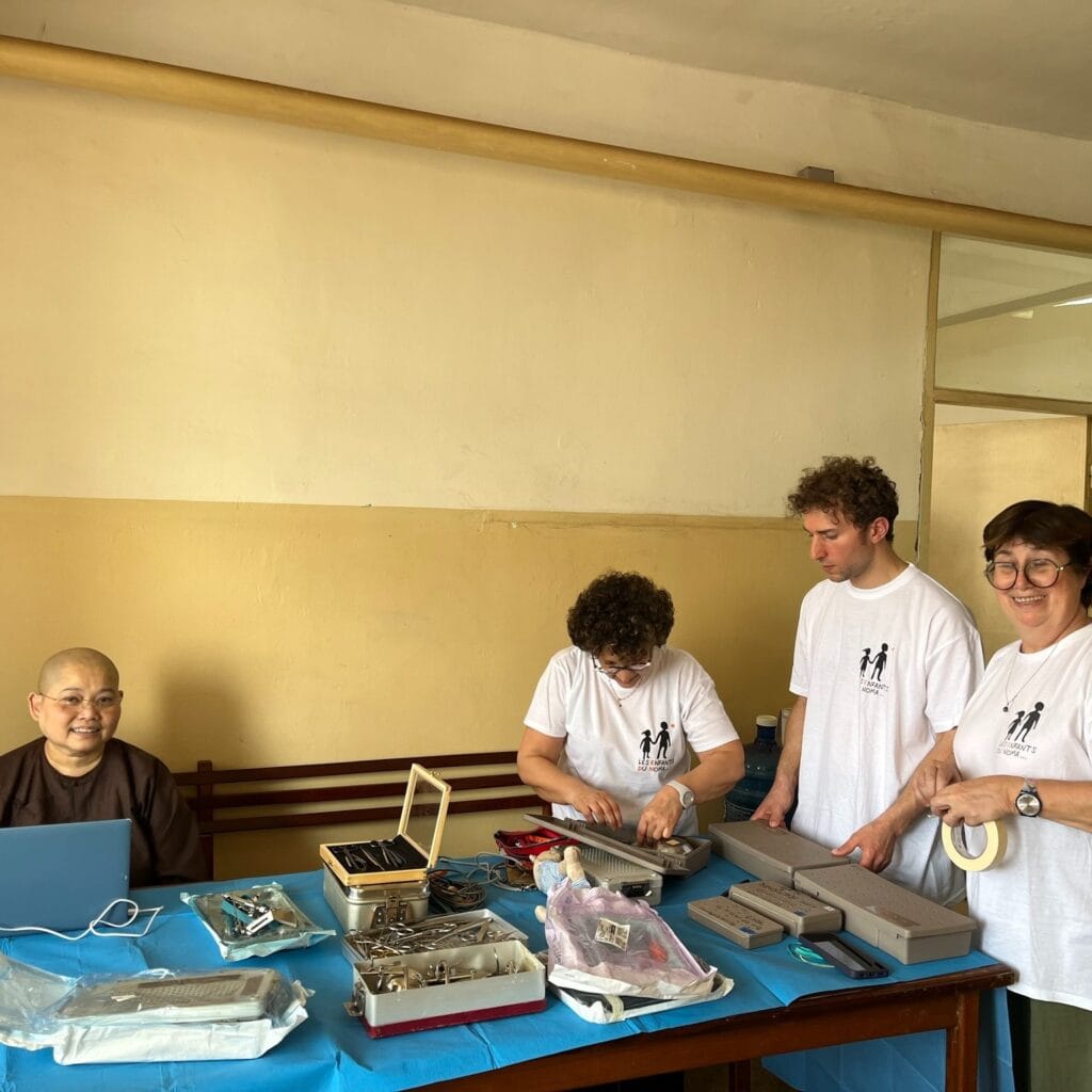 Après près de 24 heures de voyage entre Paris et Vientiane, l’équipe de la mission Laos 2026 est bien arrivée. À peine arrivés, les membres de l’équipe se sont rendus directement à l’hôpital afin de commencer l’installation du matériel médical et chirurgical.
